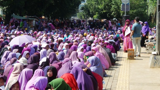 Yel-yel dan seruan layaknya supporter sepakbola tersebut terdengar di sepanjang jalur car free dayJakarta, kemarin. Ribuan umat muslim dari berbagai lembaga dakwah kampus menggelar aksi long march dari Monas menuju Patung Sudirman Jakarta dalam kampanye “Ayo Berjilbab Syar’i” dari Gerakan Menutup Aurat, Jakarta, Minggu (14/2).