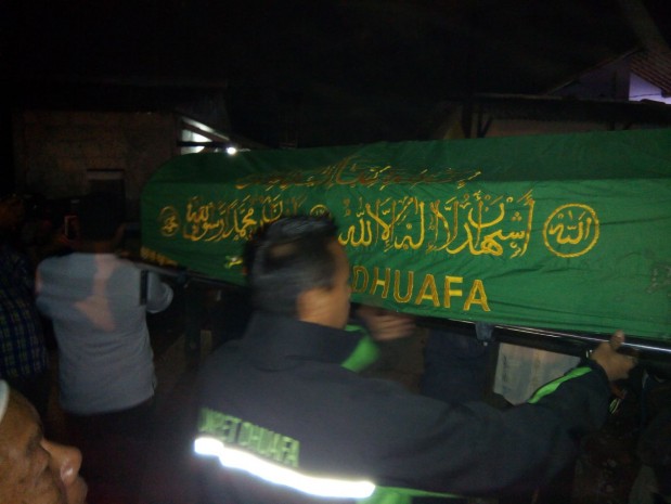 Dompet Dhuafa melalui Tim Barzah (Badan Pemulasaran Jenazah) bergegas mendatangi rumah duka yang beralamatkan di Desa Pabuaran, RT 03/12, Kecamatan Bojong Gede, Kabupaten Bogor, Jawa Barat, dengan menyiagakan sebuah ambulan jenazah untuk menghantarkan jenazah Almarhum Raiskarna ke tempat peristirahatan terakhir. Rencananya, pemakaman akan dilangsungkan esok hari, Senin (18/1). (Dompet Dhuafa/Uyang)