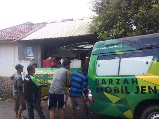 Mengupayakan keinginan yang diharapkan keluarga Almarhum Cecep, Dompet Dhuafa melalui Barzah (Badan Pemulasaran Jenazah) memberikan bantuan berupa layanan mobil jenazah untuk menghantarkan jenazah Almarhum Cecep ke Kampung halaman. Selain mengantarkan jenazah Almarhum, Barzah Dompet Dhuafa juga menyediakan seperangkat kain kafan untuk proses pemulasaran jenazah Almarhum Cecep.