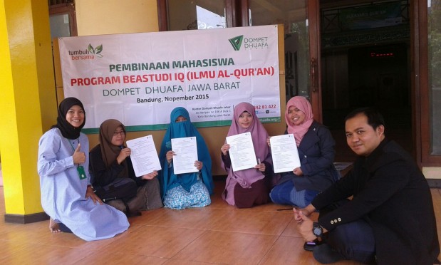 Dalam proses seleksi penerimaannya, kelima mahasiswi tersebut di atas telah mengikuti beberapa tahap sebagai persyaratan dan ketentuan menjadi pemetik manfaat program. Adapun tahapan yang telah dilaluinya adalah verifikasi berkas pendaftaran, tes kompetensi (pengetahuan dan wawasan ilmu al-Qur’an), wawancara dan validasi data terkait kondisi obyektif keluarga serta tempat tinggalnya masing-masing. Setelah tahapan tersebut, kemudian di lakukan pemantauan akhir dan pleno penetapan sebagai pemetik manfaat program dalam bentuk pembuatan surat akad Program. Dan kelimanya telah dinyatakan memenuhi criteria dan persyaratan serta berhak menerima manfaat program BEASTUDI QUR’AN DOMPET DHUAFA JAWA BARAT angkatan I, yang penandatanganan akadnya telah dilangsungkan pada hari selasa, 24 Nopember 2015 di Mesjid Al-Ikhlas UNINUS Bandung. Dompet Dhuafa Jawa Barat telah  mentargetkan 10 pemetik manfaat selama tahun 2015 yang tersebar di beberapa perguruan tinggi swasta maupun negeri Kota Bandung. Insya Allah..