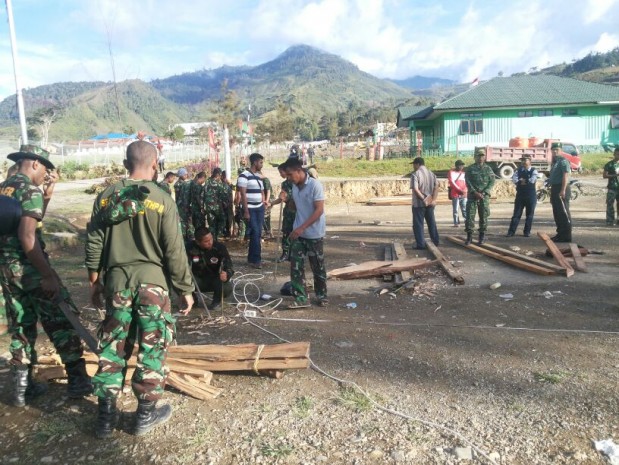 TOLIKARA, PAPUA – Pasca insiden Tolikara pada pelaksanaan shalat Idul Fitri sepuluh hari lalu, umat Muslim di Tolikara masih mengalami trauma untuk melaksanakan shalat berjamaah. Ada rasa phobia saat bergerumul karena takut dikira melakukan aktivitas keagamaan. Diakui oleh Imam Al Faruq, Koordinator Program Dakwah Nusantara Dompet Dhuafa, ada beberapa pihak yang memanfaatkan kondisi ini untuk menebarkan rasa takut. Adapun shalat Jumat berjamaah dilangsungkan di Gedung Koramil. Kegiatan yang diinisiasi oleh Dompet Dhuafa ini diikuti oleh sekitar dua ratus jamaah.