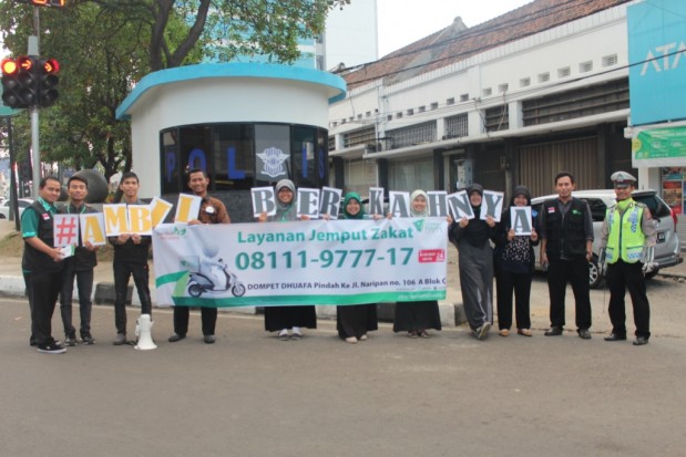 Belasan Sahabat Ramadhan atau yang biasa disebut pejuang zakat ini membagikan 200 takjil di daerah Simpang lima, yaitu Jalan Karapitan, Kosambi, Burangrang, dan Sunda, kamis (2/7). Kegiatan berbagi takjil ini, dimeriahkan juga oleh aksi Kang Sidiq sebagai maskot Dompet Dhuafa. “ kegiatan ini bukan hanya kegiatan yang bersifat ‘memberi’ saja. Kegiatan ini juga bertujuan untuk memperkenalkan dompet dhuafa jabar pada warga sekitar agar dapat lebih dekat dan tumbuh bersama masyarakat bandung “ ucap Dhoni pimpinan cabang Dompet Dhuafa Jabar. Selesai membagikan Takjil, para Sahabat Ramadhan berfoto bersama Polisi setempat yang sedang bertugas. “ semoga dengan kegiatan ini, kami bersama para Muzaki, Mustahik, dan seluruh masyarakat Jawa Barat dapat sama-sama mengambil berkah Ramadhan “ pungkasnya