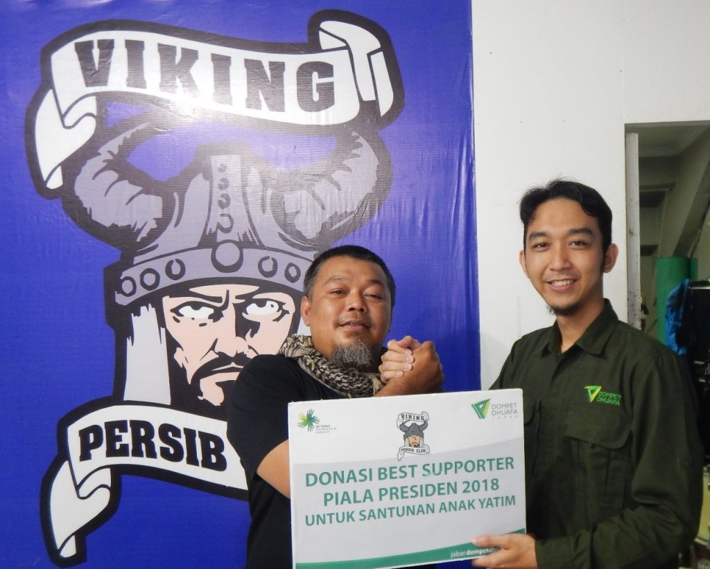 Donasi Best Supporter diserahkan langsung oleh Yana Umar, pentolan Viking, salah satu kelompok suporter PERSIB Bandung, kepada Yogi Achmad Fajar, Manager Fundraising dan Komunikasi Dompet Dhuafa Jabar, Selasa (6/3) di Stadion Sidolig, Kota Bandung.