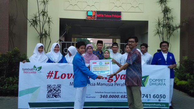 Begitu pula dengan civitas sekolah Madrasah Pembangunan UIN Jakarta. Donasi Sebesar Rp 15.100.000 terkumpul selama dua hari. Donasi tersebut diberikan secara simbolis dari Momon Mujiburrohman dari Madrasah Pembangunan kepada Andhika Bayu Perdanadari Dompet Dhuafa di Kompleks UIN Syarif Hidayatullah, Jalan Ibnu Taimia IV, Tangerang Selatan.